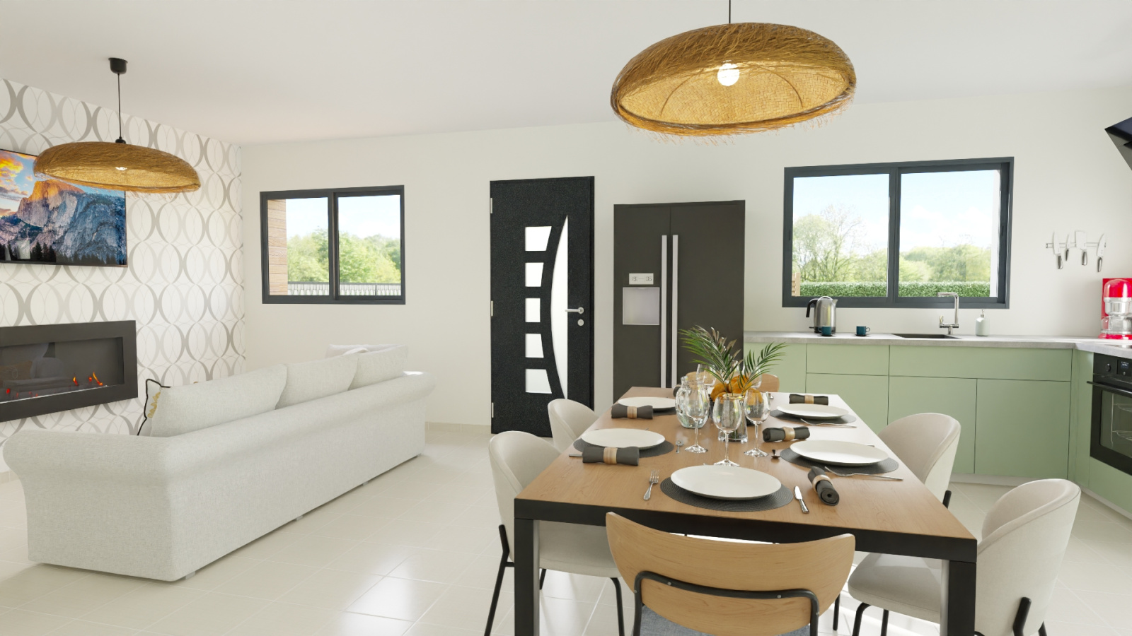- Cuisine équipée ouverte sur une salle à manger conviviale